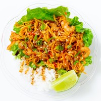 Sushi Rice (White Rice, Water), Limes, Shrimp, Imitation Crab (Surimi [Alaska Pollock And/Or Whiting, Sugar, Water, Sorbitol, Modified Corn Starch, Tetrasodium Pyrophosphate, Sodium Tripolyphosphate], Egg Whites, Starch [Modified Tapioca, Potato, Wheat], Wheat Flour, Soy Protein, Soybean Oil, Salt, Natural And Artificial Flavors [Hydrolyzed Soy Protein, Extracts Of Crab, Anchovy, Shrimp, And Soy], Calcium Chloride, Disodium Inosinate, Disodium Guanylate, Cochineal Extract, Carmine, Paprika), Green Leaf Lettuce, Cucumber, Carrots, Vinegar (Sugar, Grain Vinegar, Water, Salt, Brown Sugar [Sugar, Molasses]), Mayonnaise (Soybean Oil, Water, Whole Eggs, Egg Yolks, Distilled Vinegar, Salt, Sugar, Vitamin E, Lemon Juice Concentrate, Calcium Disodium EDTA [Used To Protect Quality], Natural Flavors), Ponzu Sauce (Soy Sauce [Water, Wheat, Soybeans, Salt], Water, Vinegar, Sugar, Salt, Bonito Extract [Fish], Lactic Acid, Lemon Juice, Autolyzed Yeast Extract, Natural Lemon, Orange Flavors With Other Natural Flavors, Sodium Benzoate: Less Than 1/10 Of 1% As A Preservative, Succinic Acid, Disodium Insinate, Disodium Guanylate), Sriracha Sauce (Chili, Sugar, Salt, Garlic, Distilled Vinegar, Potassium Sorbate, Contains Sodium Bisulfite As Preservatives, Xanthan Gum), Japanese BBQ Sauce (Sugar, Soy Sauce [Water, Soybeans, Wheat, Salt], Water, Dextrose, Salted Mirin [Sake (Water, Rice, Koji), Sugar, Water, Salt, Yeast Extract], Salted Sake [Water, Rice, Koji, Salt], Corn Starch, Caramel Color, Xanthan Gum), Scallions, Chili Oil (Soybean Oil, Chili), Cayenne Pepper, Sesame Seeds.